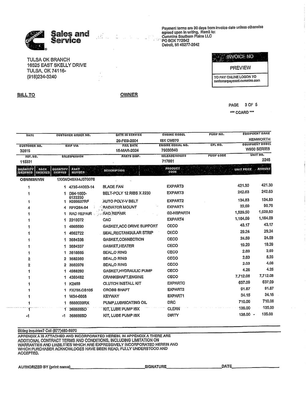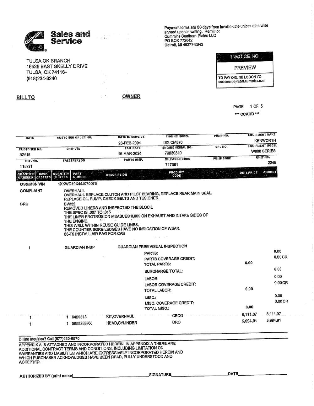 90K MILES ON CERTIFIED CUMMINS ENGINE OVERHAUL –