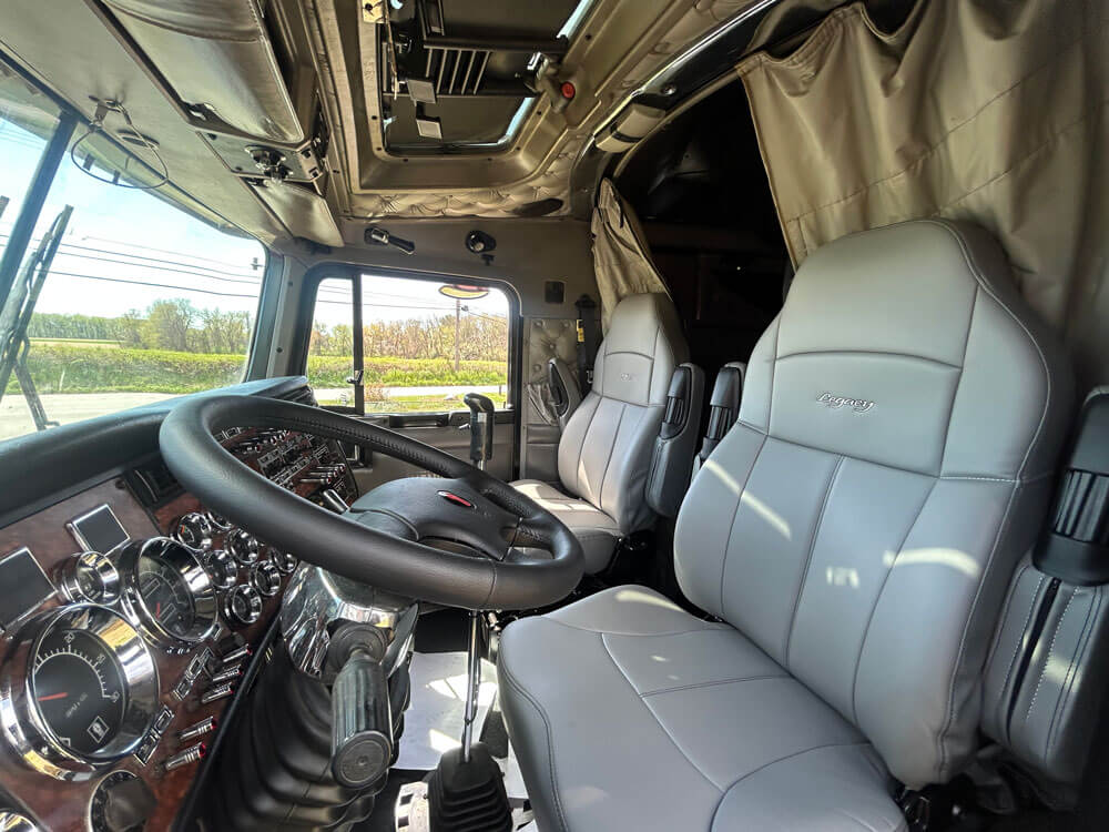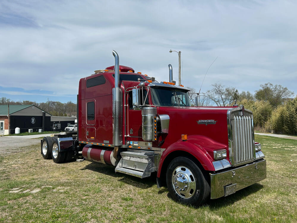 2004 KENWORTH W900L, 86″ STUDIO SLEEPER, 90K MILES ON CERTIFIED CUMMINS ENGINE OVERHAUL, WARRANTY UNTIL 7/2026, WITH AN OPTIONAL 2 YEAR UNLIMITED MILEAGE WARRANTY, CUMMINS ISX, 565 HP, EATON FULLER 18 SPEED TRANSMISSION, 300″ WHEELBASE, 3.36 REAR RATIO