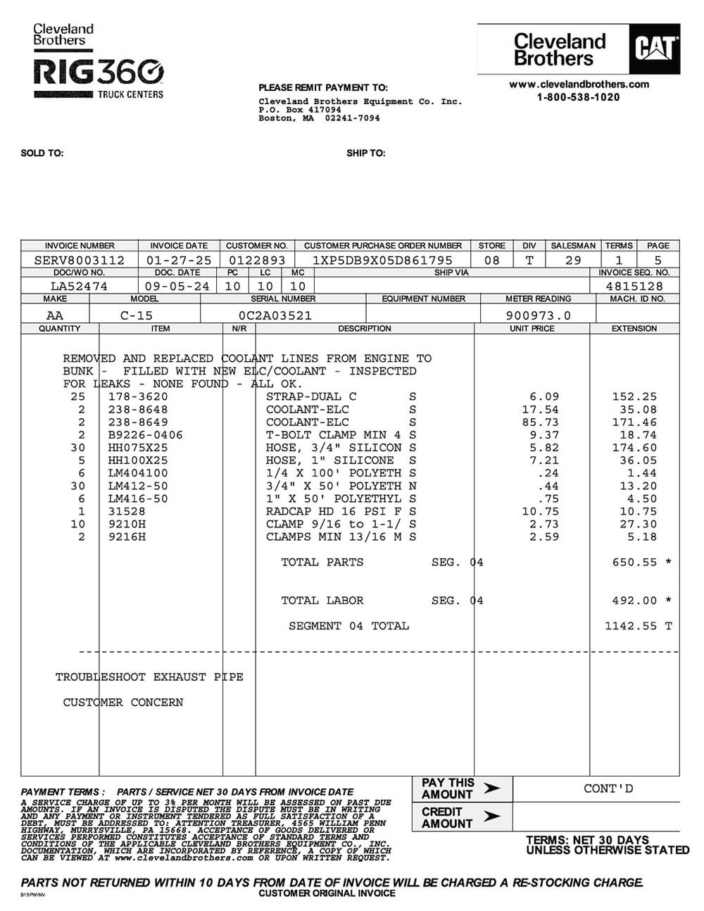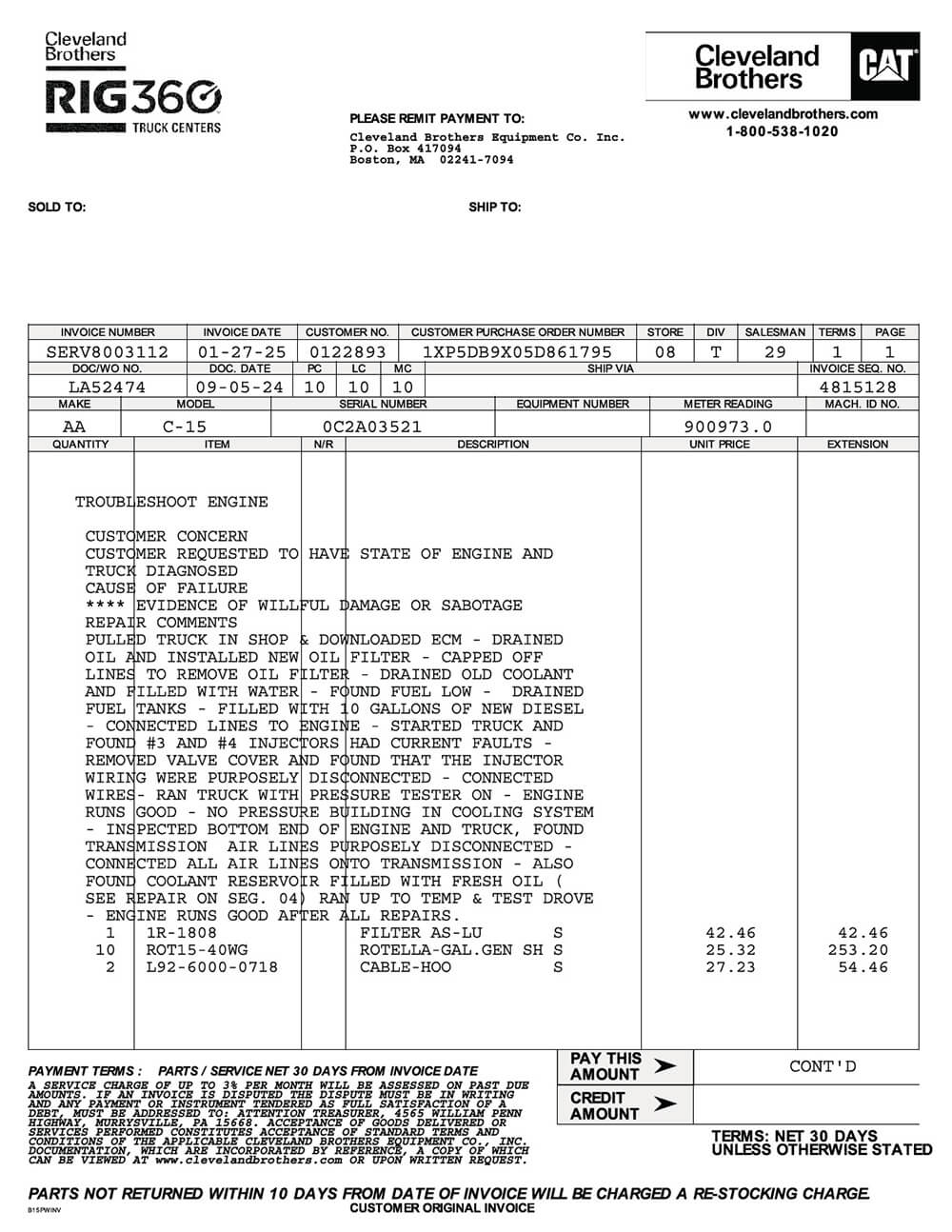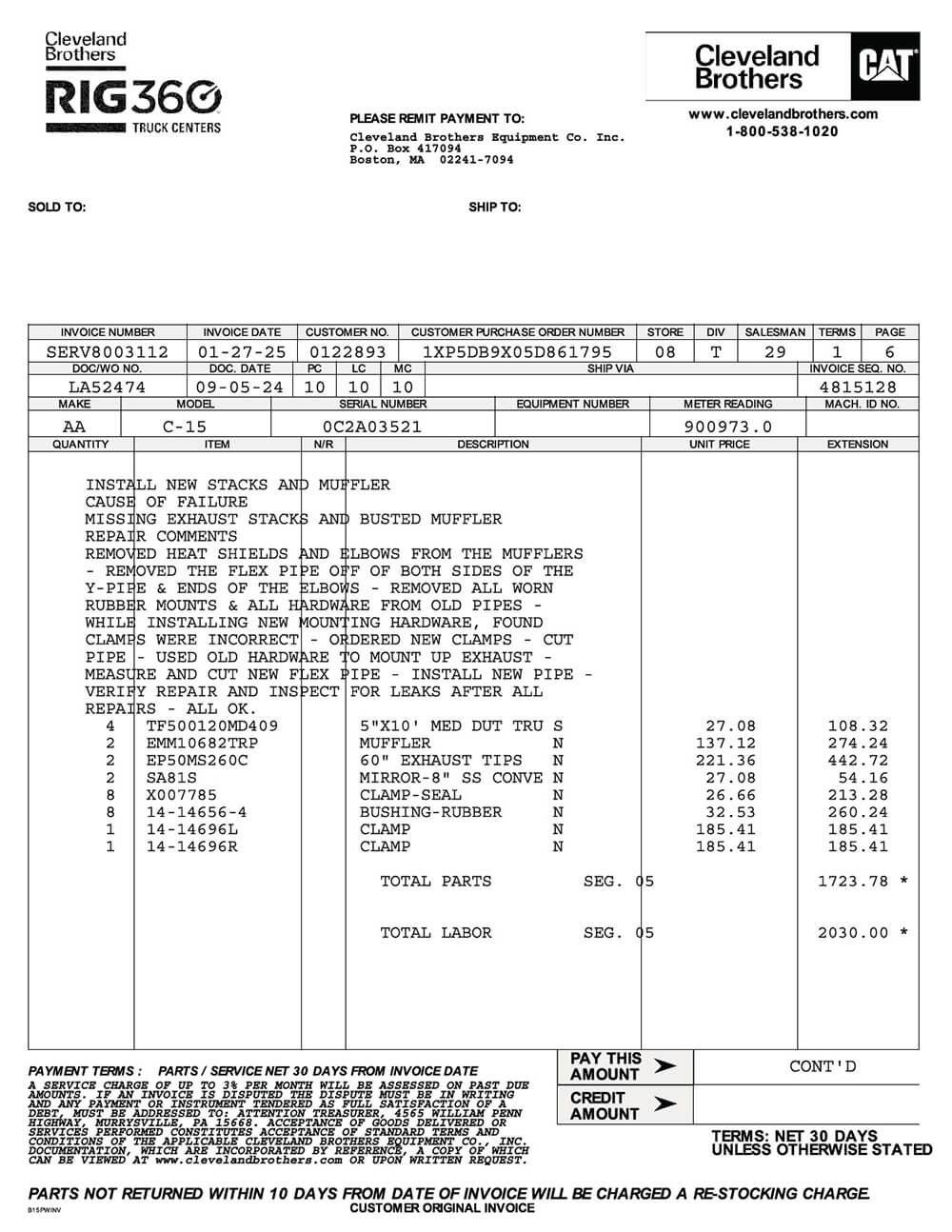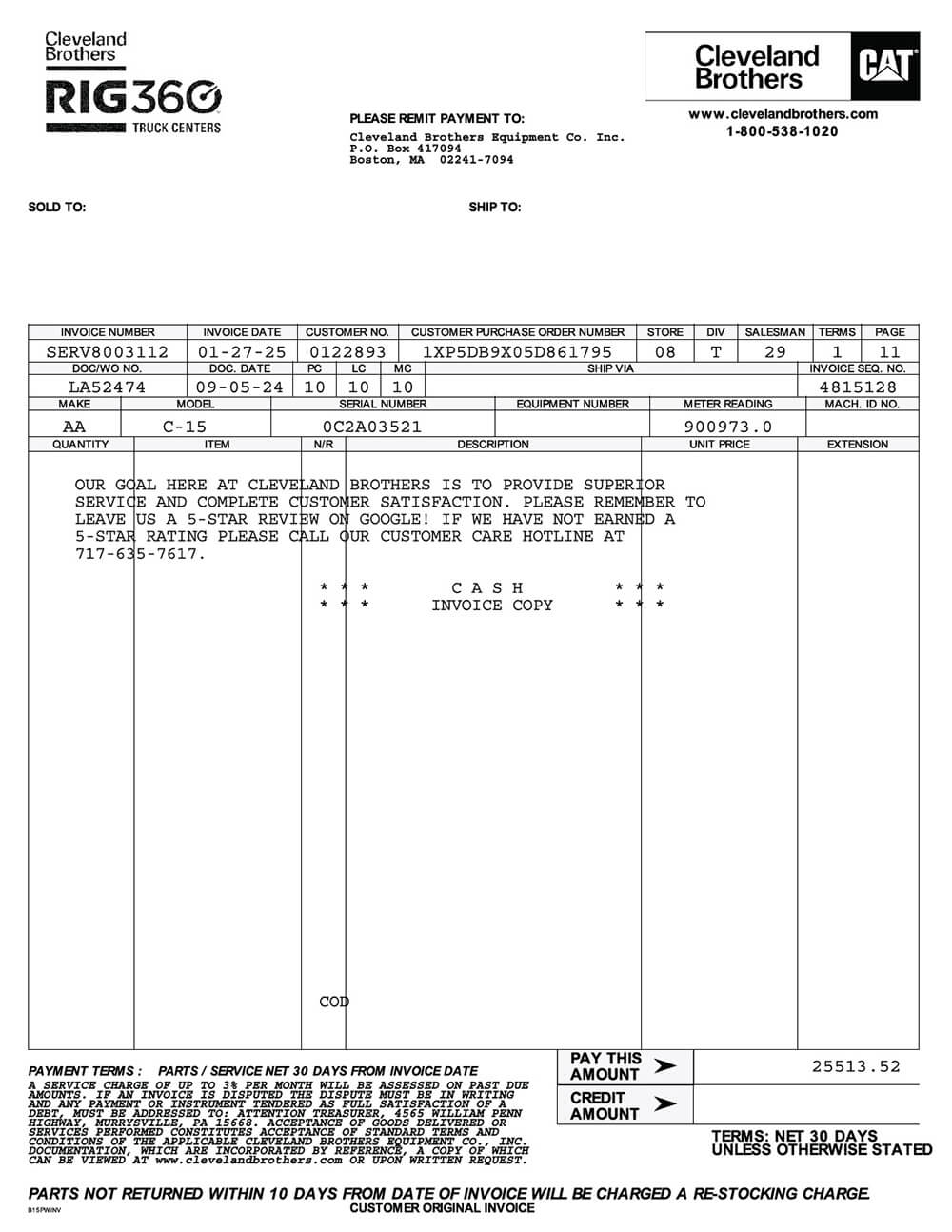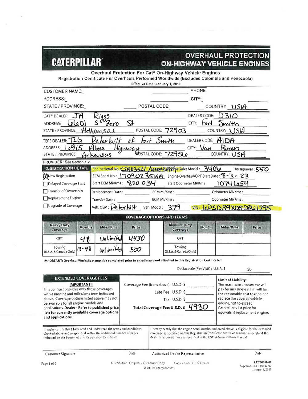CERTIFIED CAT ENGINE OVERHAUL – $55,481.82