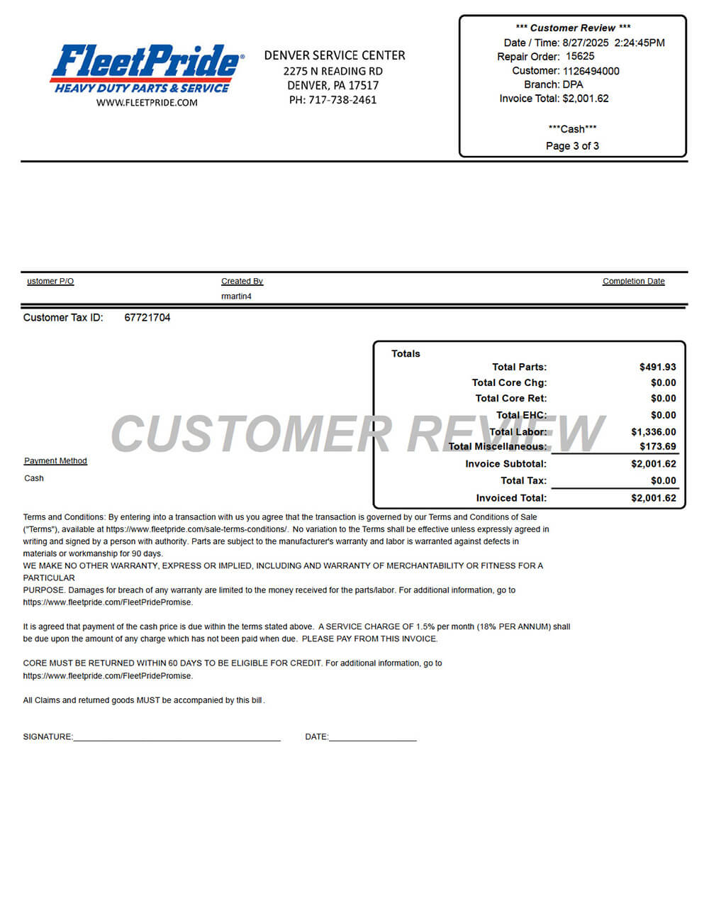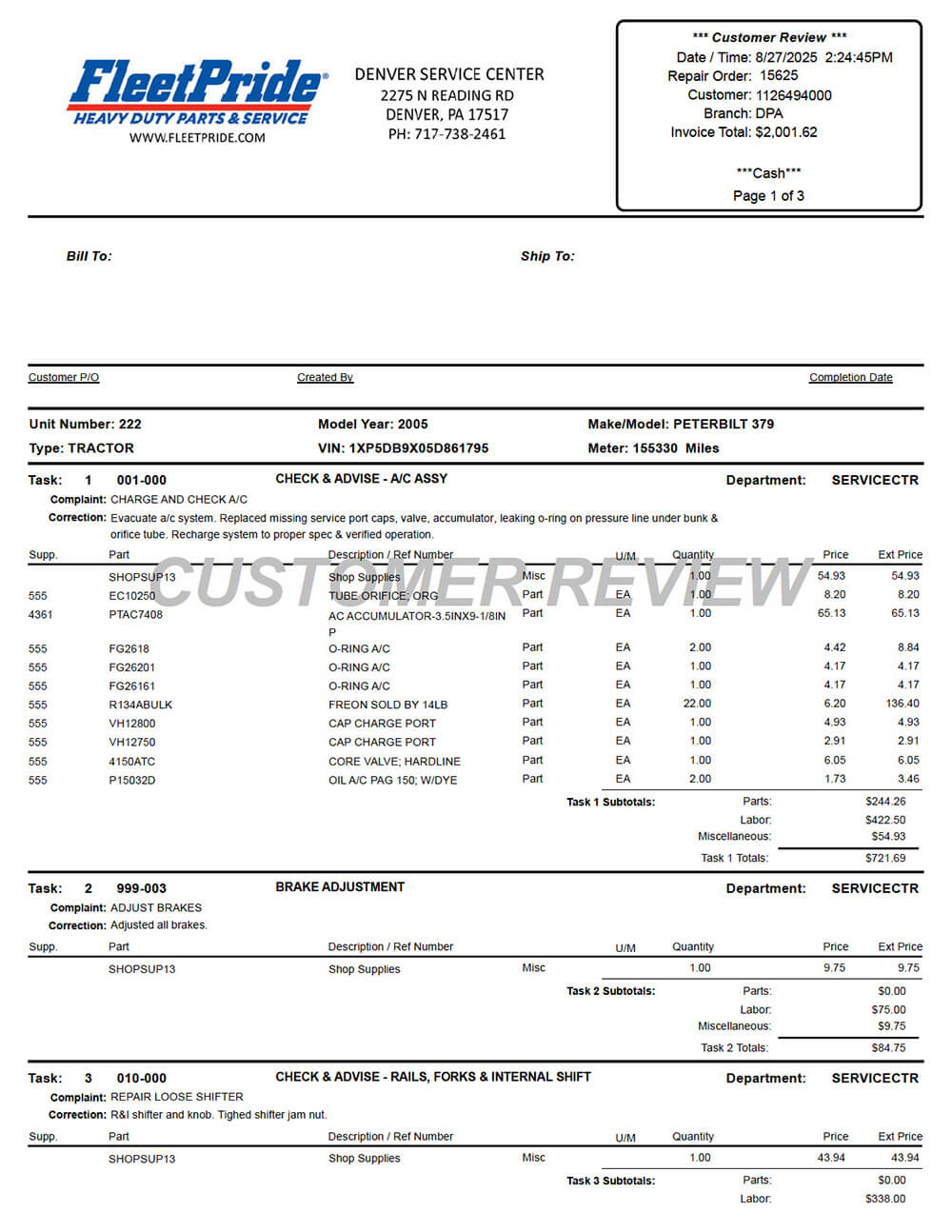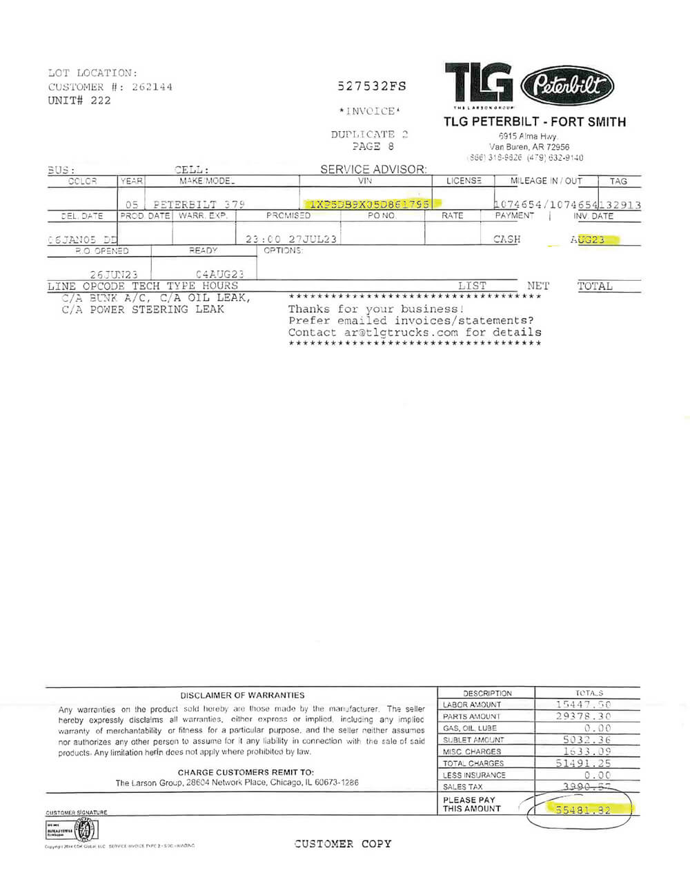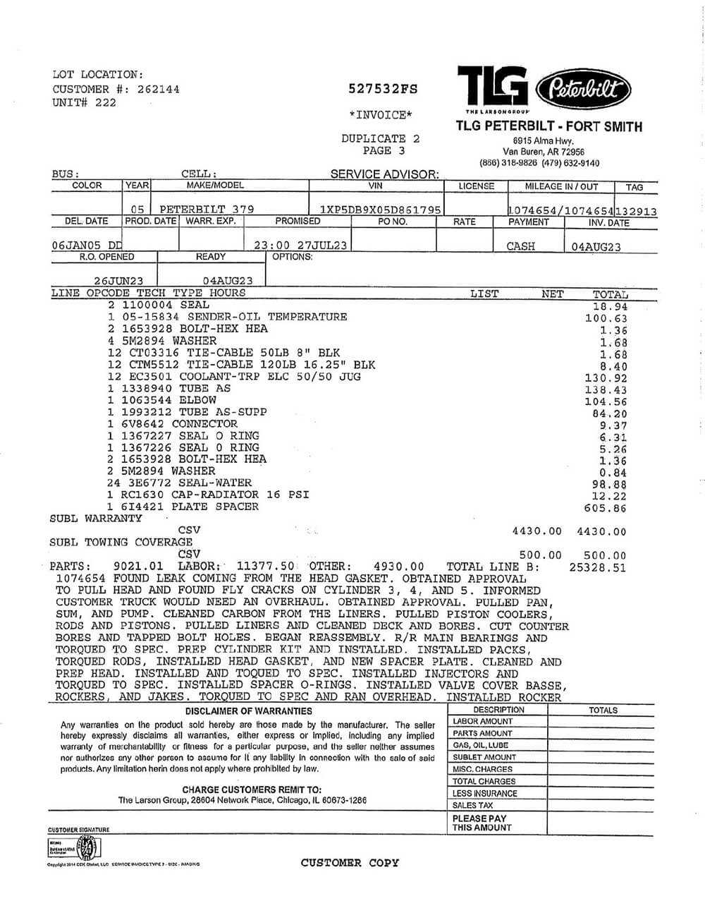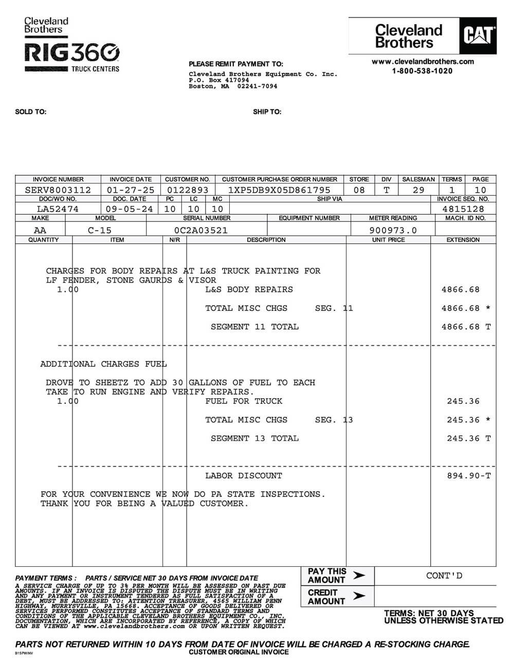 CERTIFIED CAT ENGINE OVERHAUL – $55,481.82