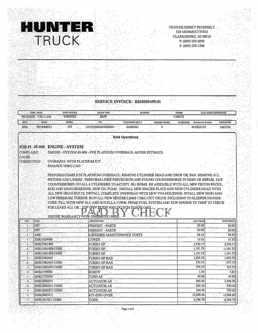 2006 PETERBILT 379 EXHD, 70″ MID-ROOF SLEEPER, CAT C-15 ENGINE, 475 HP, 728K MILES ON CERTIFIED CAT OVERHAUL, 13 SPEED MANUAL EATON FULLER TRANSMISSION, WHEELBASE 280″, REAR RATIO 3.55