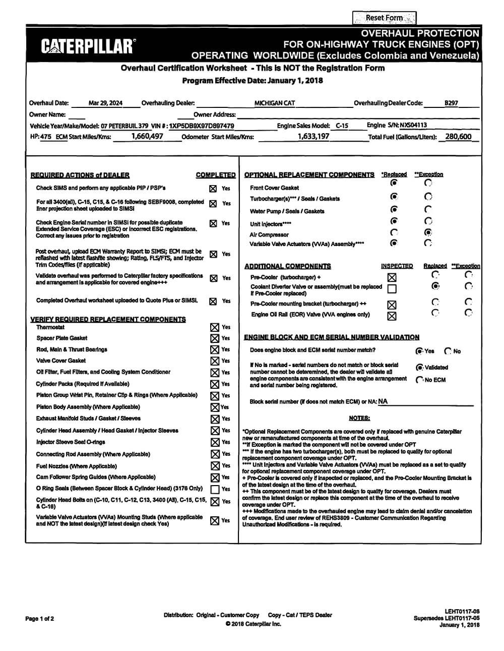 127K MILES ON CERTIFIED CAT OVERHAUL