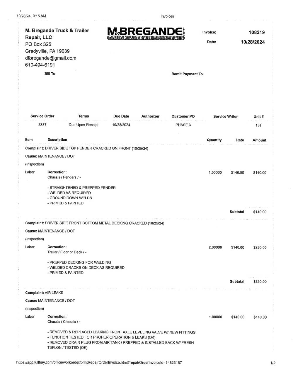 All upgrades and reconditioning services add up to a grand total of $41,215.98.