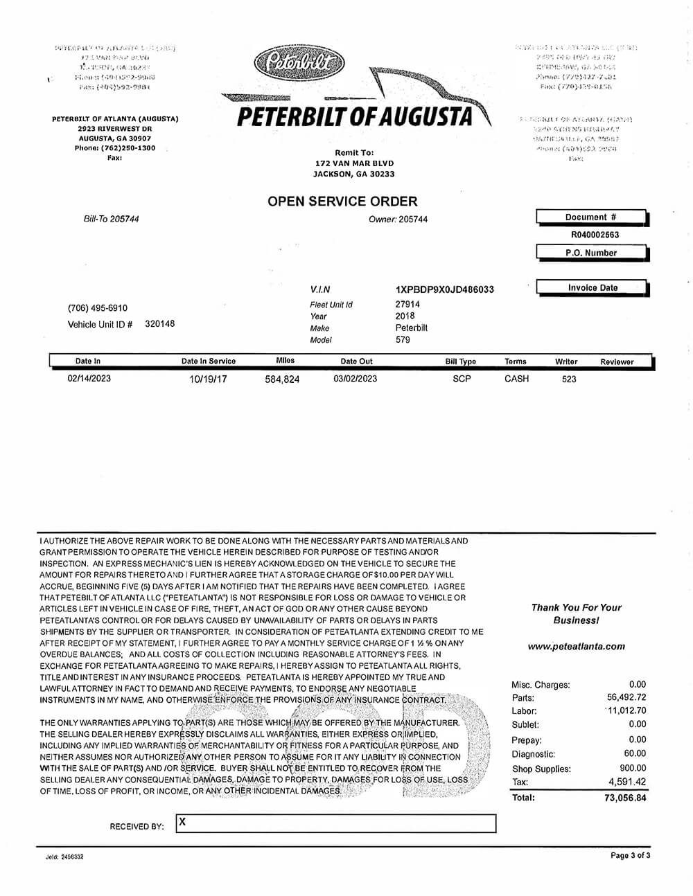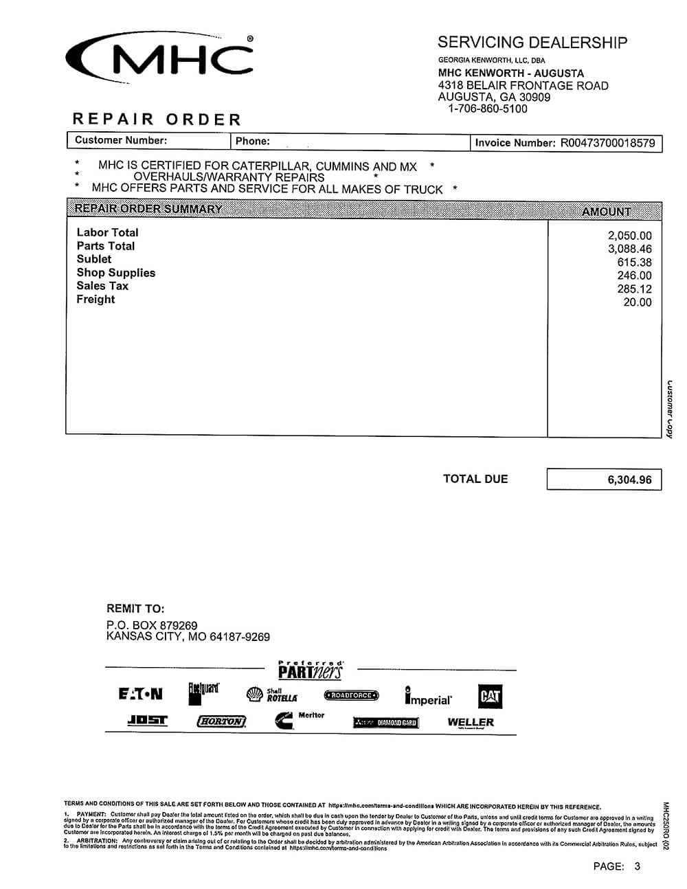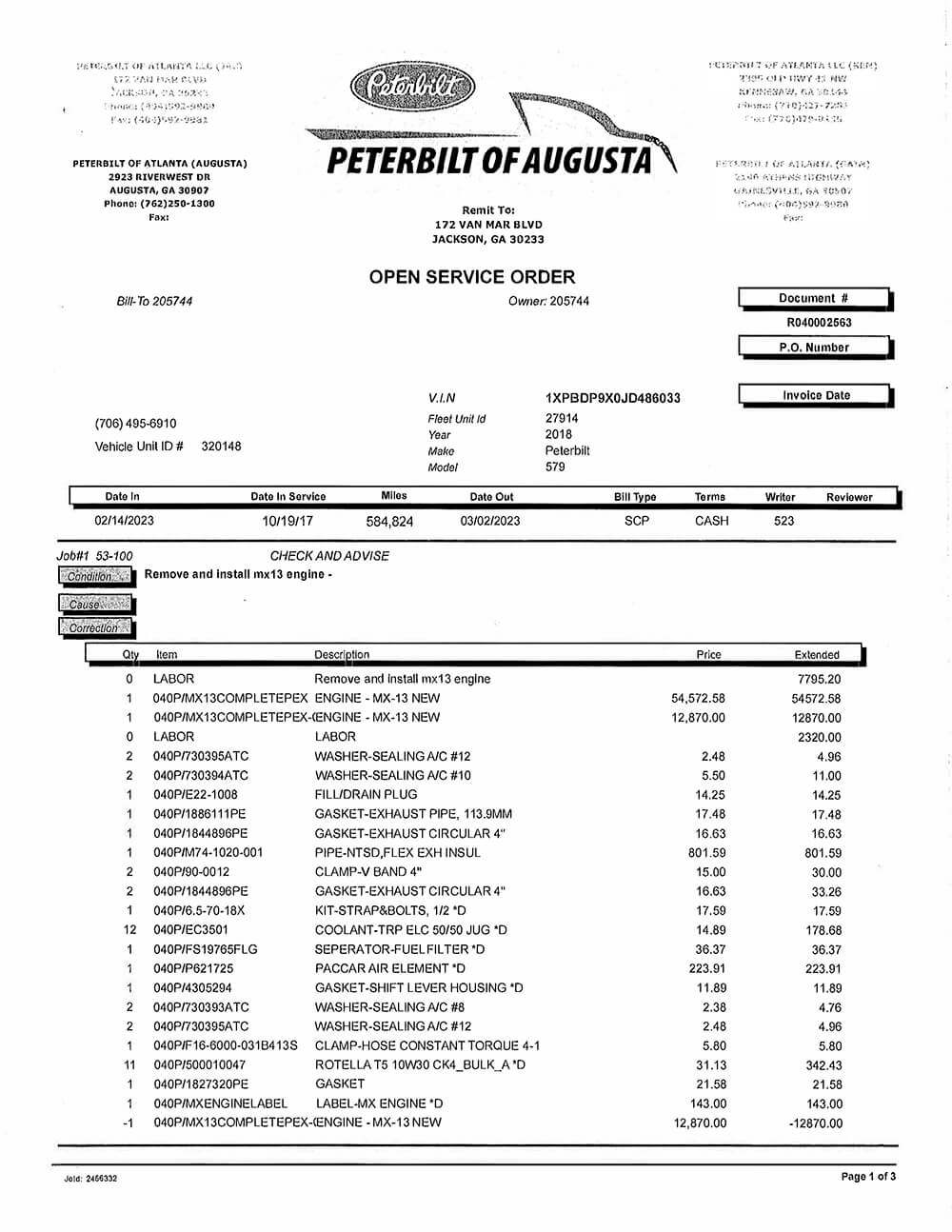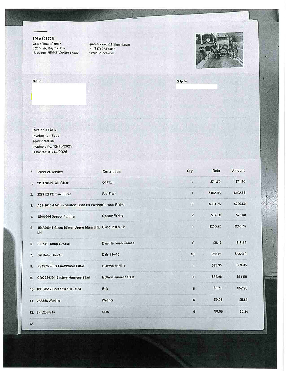 And finally, a complete professional interior and exterior detail, so, not only will your truck run like new, it will look and feel like new. Reconditioning services add up to $89,991.71.