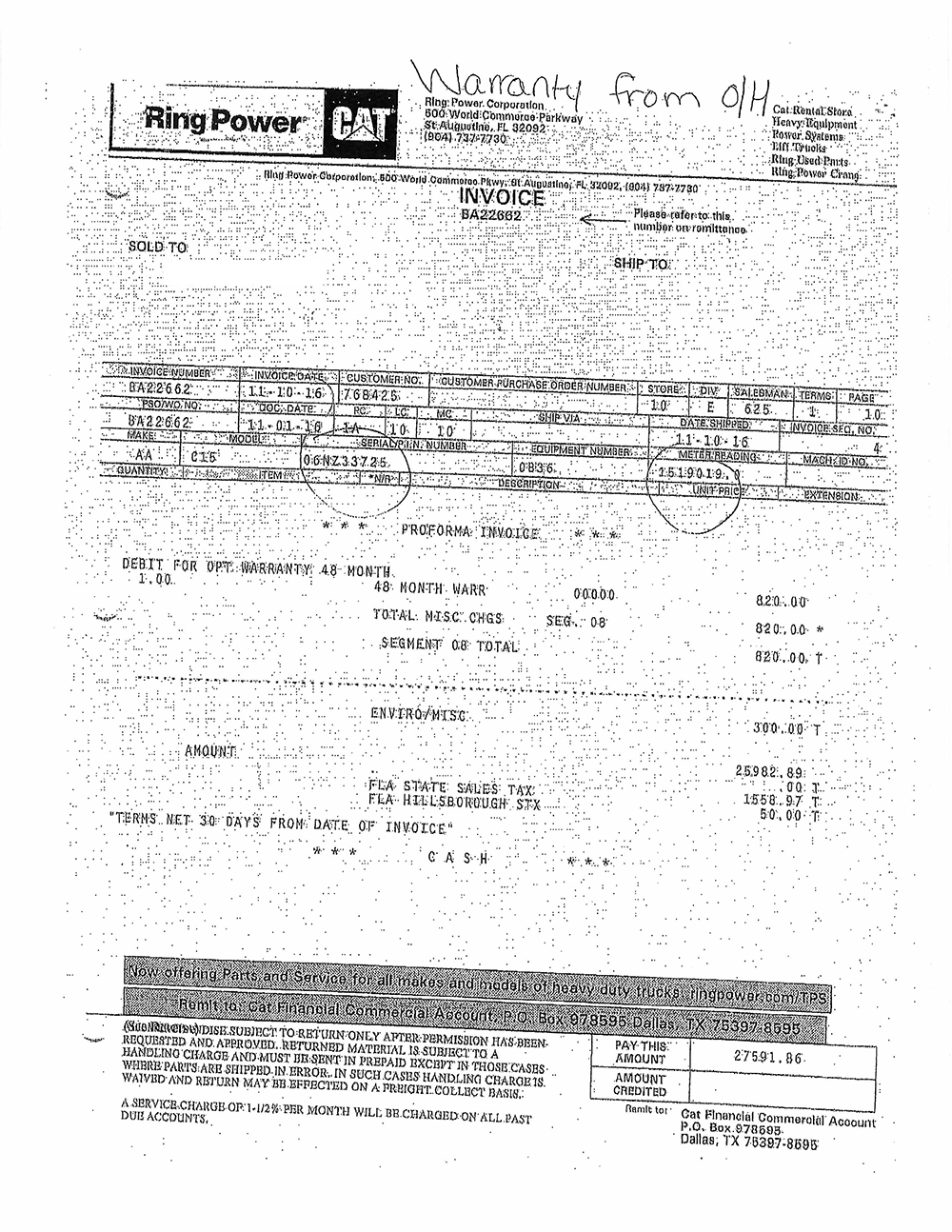 CAT 6NZ33725 engine w/Platinum Overhaul at Ring Power Center in November 2016 w/approximately 433K documented miles.